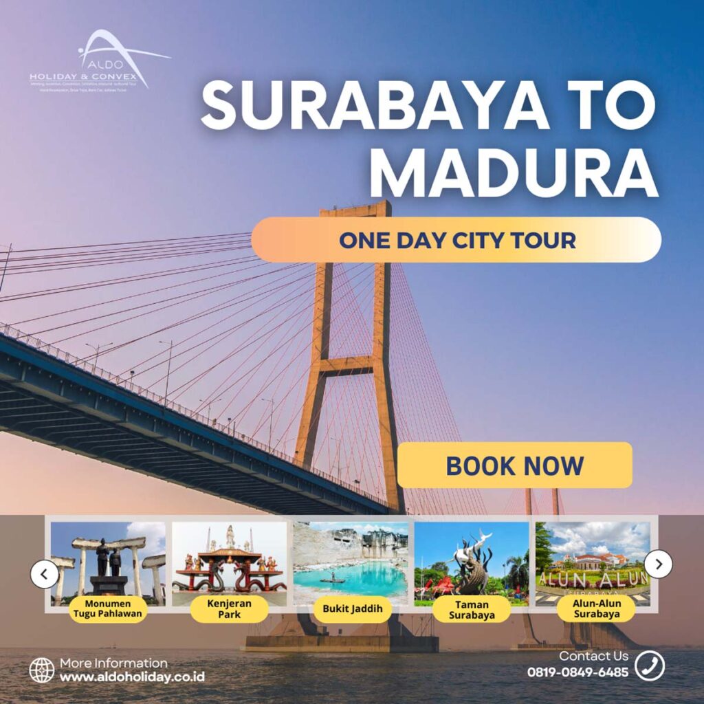 Buat kamu yang mau Explore Kota Surabaya ยท Sidoarjo ยท Sampai Madura, Aldo Holiday menyediakan paket tour yang menarik untuk Anda!